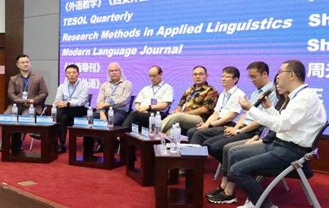 本次会议主编论坛为压轴环节,为国内外学者提供了宝贵的交流机会,进一步推动了外语教学研究的国际化与学术创新。多位国内顶级期刊主编首先发表观点。《外语教学》和《西安外国语大学学报》副主编吕生禄教授、《外语与外语教学》主编邓耀臣教授、《外语导刊》副主编周光磊副教授、《现代外语》编辑王启教授分别介绍了各自期刊在二语习得研究中的定位与贡献。随后,国际知名期刊主编分享了最新的研究方向与投稿建议。System主编张军教授、TESOL Quarterly主编Peter I. De Costa教授,Modern Language Journal副主编Shawn Loewen教授、Research Methods in Applied Linguistics主编李少锋教授,共同探讨了二语习得领域的前沿趋势,并为与会者提供了宝贵的研究启示。
