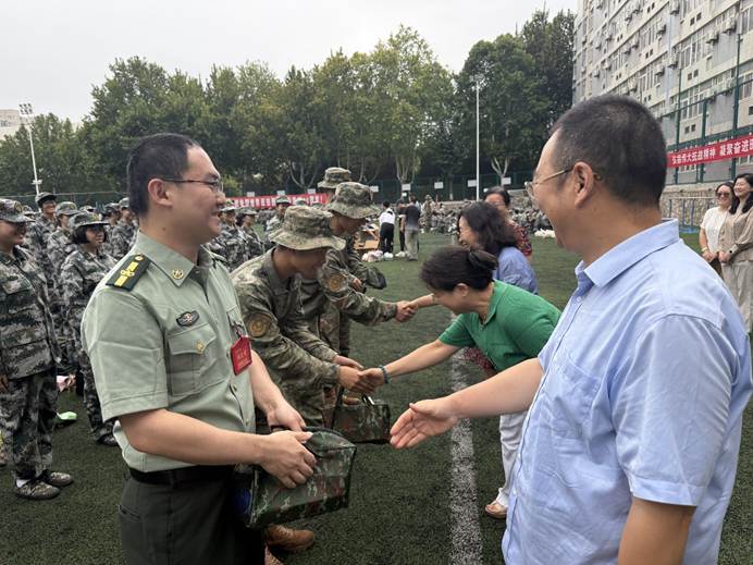 为切实关心2025级本科生新生军训生活,传递学院对新生的深切关怀与殷切期望,8月28日上午,学院党委副书记许明,副院长李莹,日语系主任曹洪荃,英语系副主任曹浩煊,新生班主任刘睿、张莉、邹敏、孙莉、樊静薇以及组织员徐阳, 来到训练场代表学院开展军训慰问活动。承训教官、学院军训带队教师杜文博以及2025级全体本科生参加了本次活动。活动伊始,党委副书记许明首先代表学院对承训教官和带队老师表示感谢,对同学们表达关心...