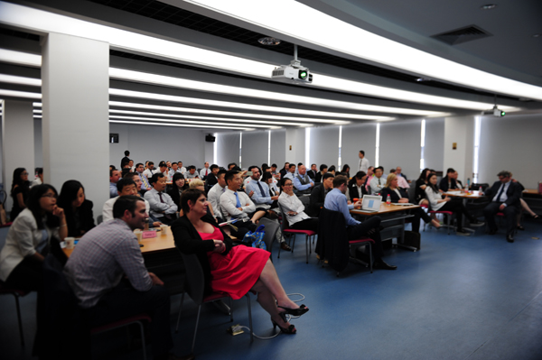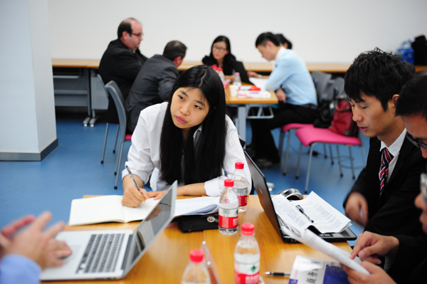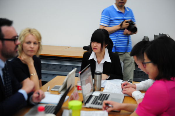 译员们分别负责13个小组模拟谈判。活动前期,管理学院的老师召开了准备会议,译员们也对活动内容进行了解,并且提前针对背景材料做了充分的准备。6月5日下午,中外双方谈判代表在翻译的陪同下彼此会面、相互寒暄。正式谈判时间为6月6日上午9时15分至11时15分,谈判人员包括四位中方在职工商管理硕士和两位来自澳大利亚昆士兰理工大学的EMBA学生。谈判情境设置在虚拟的爱丽丝星球上的一个小镇——仙境镇,中方代表当地企业双湖矿业公司,澳方代表仙境镇镇政府,双方代表以经济发展和环境保护为主要议题,针对在仙境镇进行新矿址选择、土路路面铺筑、道路保养、废弃矿区修复,税收征收和附加条款等问题进行深入谈判。在双方相互交谈的过程中,同学们流利清晰的中英双语翻译使得谈判顺利进行,为谈判双方最后达成一致协议发挥了重要作用。