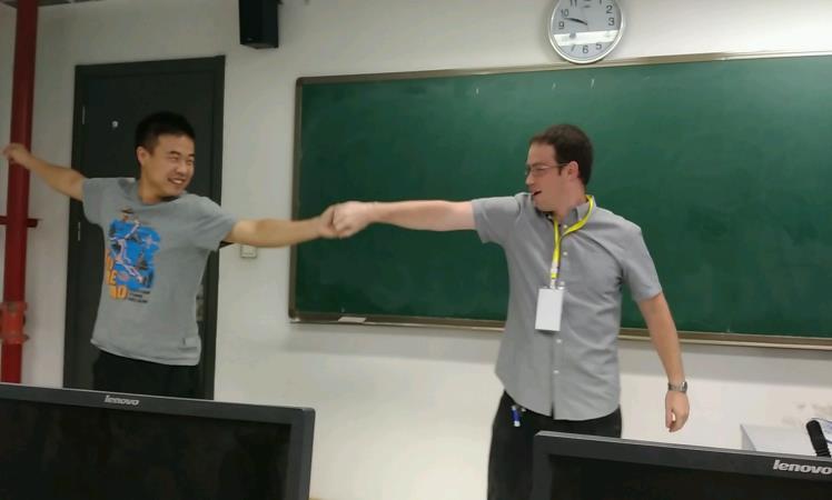 正如David所说,这次实践是一个相互交流和学习的过程,我们都可以从对方身上学到很多东西。例如,在星期二,David、John和我们讨论了中国的特色美食。面对中国博大精深的饮食文化,他们都很震撼,也很期待亲自品尝。在星期四和星期五,我们又探讨了中西方文化的差异,包括思维方式、传统习俗等等。John说,来中国之前,他听说中国人都会功夫,人人穿着传统的服装。真正来到中国,才发现原来一切和传言都不一样。David也欣喜地表示,今天的中国和他2000年时第一次来完全不一样,中国的发展之快让他十分惊喜。同时,我们对当今的美国文化也有了更多的了解,他们把当今美国在文学、音乐、教育等等各个方面的最新动态直观地呈现在我们面前。