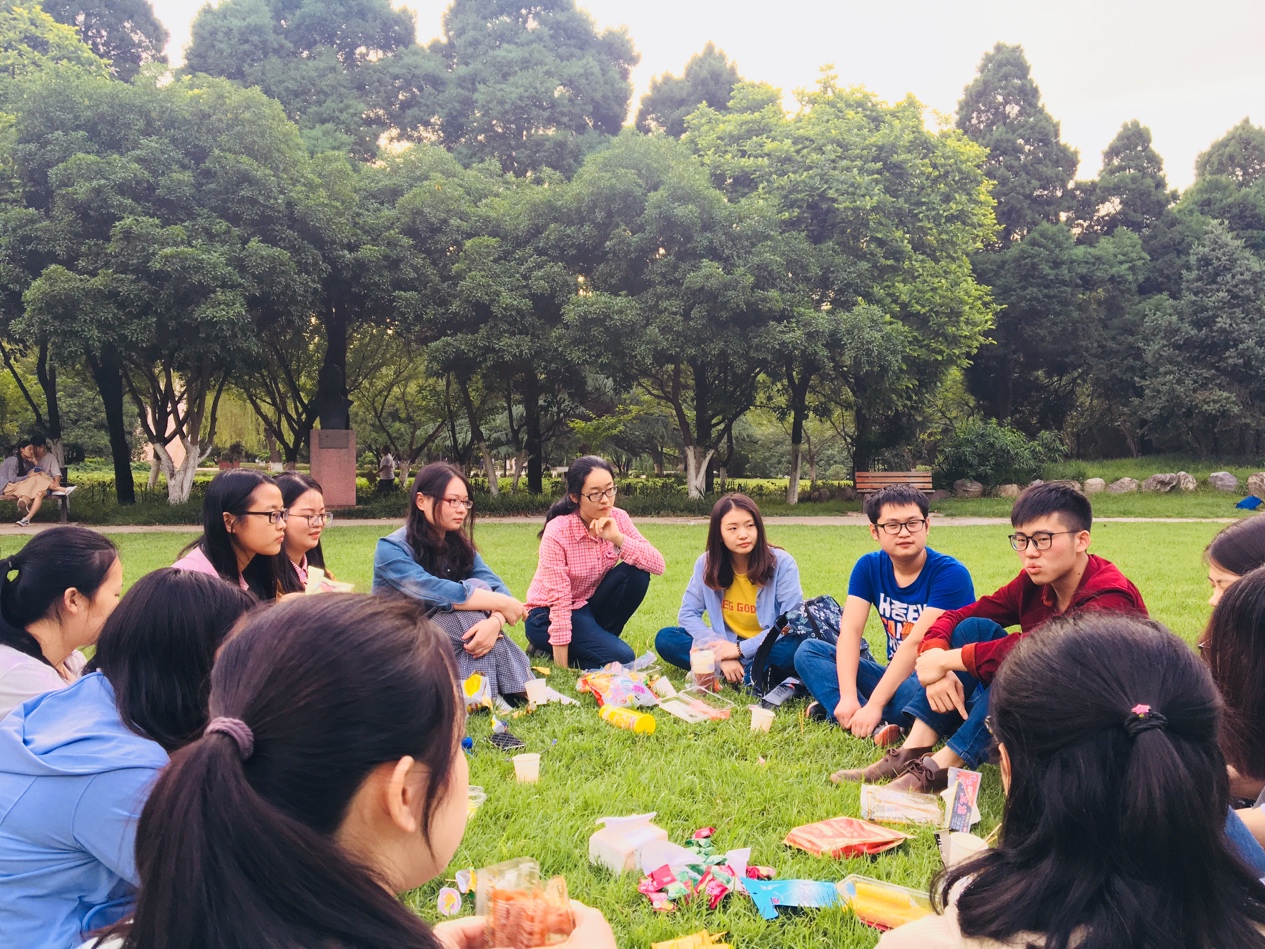 据调查,抑郁症学生占到了高校心理咨询中心来访量的两成,并且硕博士抑郁呈现升高趋势,故将此次活动的主题定为“共同面对抑郁,共促心理健康”。为保证活动的知识性与趣味性,经班委讨论后采用线上学习和线下交流相结合的方式。班长召集各位同学搜集抑郁症和心理健康方面的资料,并将资料上传至微信群,大家线上主动学习相关知识。为加深对心理健康知识的理解,同学们放下手机,走进学校东花园,交流和思考学习中遇到的疑惑和问题。