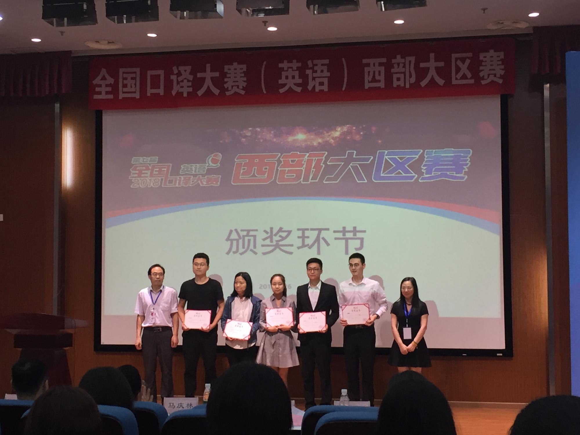 2018年5月26日,由中国翻译协会主办,电子科技大学和四川兰畅科技有限公司承办,四川兰畅教育管理有限公司协办的第七届全国口译大赛西部大区赛于四川省成都市电子科技大学(清水河校区)落下帷幕。来自西部地区九个省份高校的110多名选手同台竞技,我校从陕西赛区脱颖而出的8名学生参加了比赛,其中2017级MTI翻译硕士研究生徐亮荣获西部赛区一等奖,刘雅恬获二等奖,任潇潇及2015级本科生陈雅莉获三等奖。徐亮将代表西部赛区参加2018年6月份在北京举行的第七届全国口译大赛总决赛。