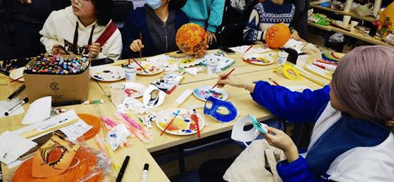 下午14:30,负责游园晚会后勤的同学入场,开始布场、化妆、彩排节目,准备小零食、点心和饮料以及绘画所使用的画材供参加的同学取用。