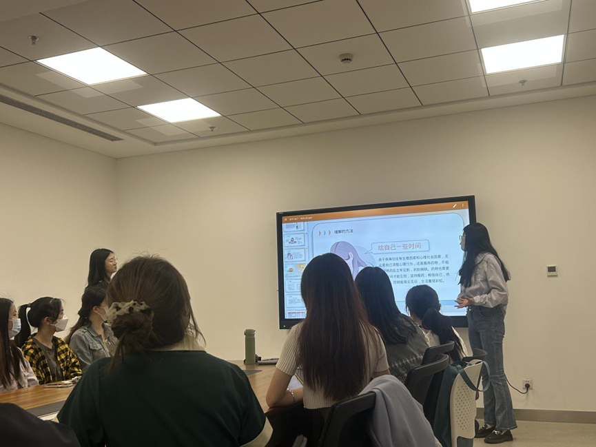 首先,心理委员杨天玉从介绍抑郁症与焦虑症的概念定义出发,带大家了解这些心理问题,介绍了抑郁症与焦虑症的区别以及可能的引起心理疾病的原因。鼓励同学们用心理自测量表来评估自己的心理状况,做到正确积极地了解自己。