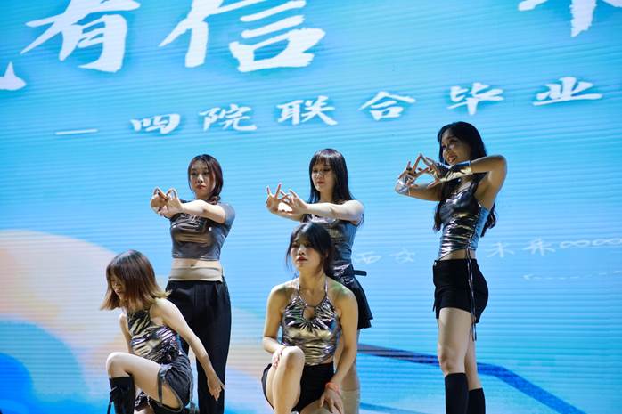 伴随着女声的悠扬,和男声的说唱,庄可意和王家乾的《罗生门》开启了毕业晚会第一章“盛夏”的序幕,思绪仿佛弥漫在懵懂之中,又回到了那个略有感伤的夏季夜晚,轻轻诉说着独属于这个年纪的悄悄话。随后,张煊赫马研宇为我们带来了说唱歌曲《隆里电丝》,延续着夏夜的淡淡忧思,又轻快地叙述着偶尔发作的孤独,揭开了每个人心底共鸣的面纱。紧接着,由张可怡等四位同学表演的爵士《Hip》则展现了浪漫与活力并存。汤钦睿独唱的《假如爱有天意》在婉转千回的旋律里讲述着爱的故事,讲述着错过、想念和忘怀,如同一场温柔的告白。最后,王璇等四位同学演绎了一场鬼灵精怪的爵士《Trick or Trick》,为第一章合上了书页。