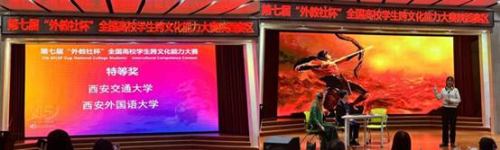 依据今年规则,陕西省赛包含复赛与决赛两个阶段,复赛的前八强进入决赛。复赛包含跨文化交流典型案例展演、分析与问答三个环节。决赛包含讲述中国故事、多元文化视频的情景述评及问答三个环节。其中仅有案例展演环节为有备而战,其余所有环节均需选手临场即兴发挥,考察的是参赛选手的英语基本功、跨文化交际的理论知识储备与临场应变能力,极具挑战性。比赛中,我校选手理论扎实、逻辑清晰、语言流畅、配合默契,以总分第一的成绩从40支参赛队伍中脱颖而出,荣获陕西赛区特等奖,并将于12月代表陕西省参加全国决赛。