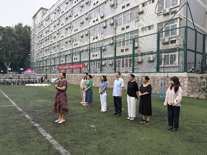 为切实关心2025级本科生新生军训生活,传递学院对新生的深切关怀与殷切期望,8月28日上午,学院党委副书记许明,副院长李莹,日语系主任曹洪荃,英语系副主任曹浩煊,新生班主任刘睿、张莉、邹敏、孙莉、樊静薇以及组织员徐阳, 来到训练场代表学院开展军训慰问活动。承训教官、学院军训带队教师杜文博以及2025级全体本科生参加了本次活动。