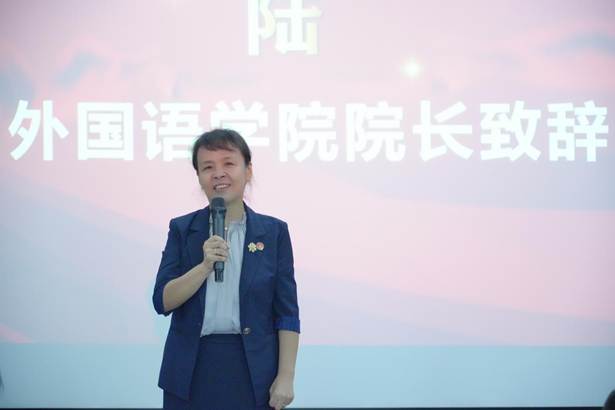 接下来,新生代表顾天宇同学分享了她对未来的规划与畅想。作为“交二代”,她也曾同其他同学们一样“迷茫”过,但是她很快就自己从“困惑”转变到“坚定”。她深切感知到学校为同学们提供了链接世界的平台,而语言更是超越文化融合的钥匙。她号召同学们一起热烈拥抱西交外院的星辰大海,努力长成参天大树,形成葱郁森林。
