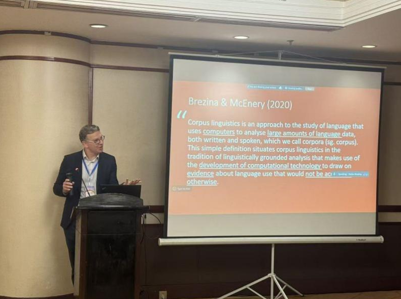 在大会主旨发言环节,Tony McEnery教授介绍了人工智能与生成式人工智能在应用语言学中的最新应用;Vaclav Brezina教授探讨了人工智能的兴起对传统人类语言发起的挑战,揭示了AI技术与传统语料库研究方法深度融合的潜力与边界;北京航空航天大学梁茂成教授提出借助大语言模型(LLMs)构建自动化系统KWICWise,通过BERT模型的语境嵌入、聚类等技术实现索引行的高效分类,提升研究的可重复性与扩展性,体现了大语言模型对语料库语言学研究的变革价值;西安外国语大学黄立波教授用机器学习方法定量分析了《四世同堂》原文与5个回译本的风格趋同度,为文学翻译风格、回译及计算文体学提供了新视角与方法论参考。