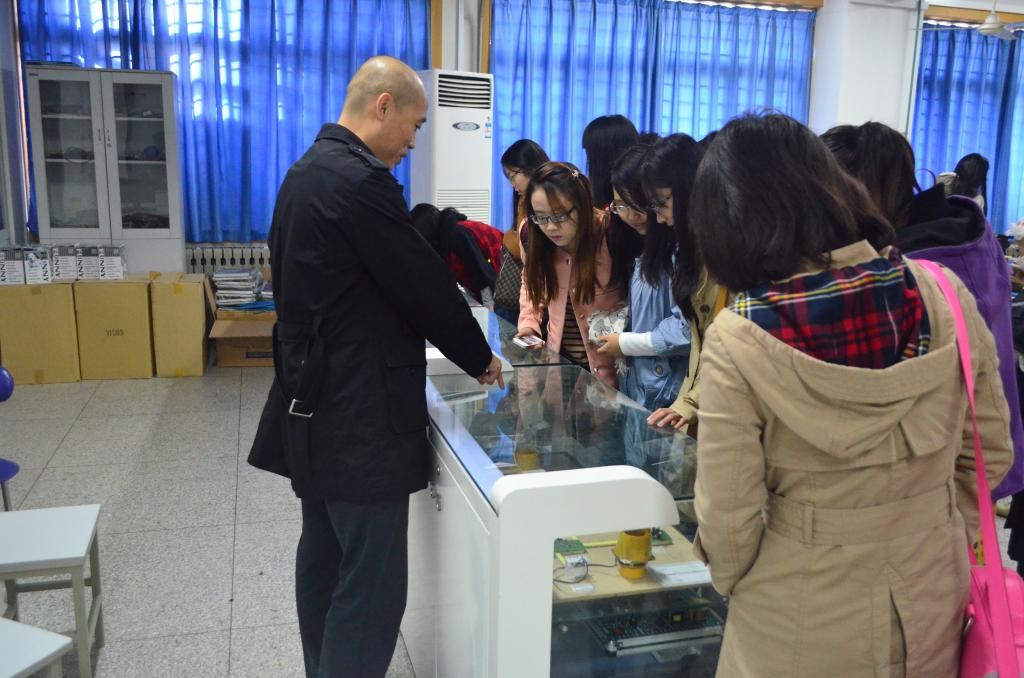 在A区,同学们主要参观了现代加工车间,了解了本科生金工实习、电子装调实习和测控基础实习的大致状况,并观看了往届学生的优秀作品,同时还参观了部分专项实践团队的办公室。