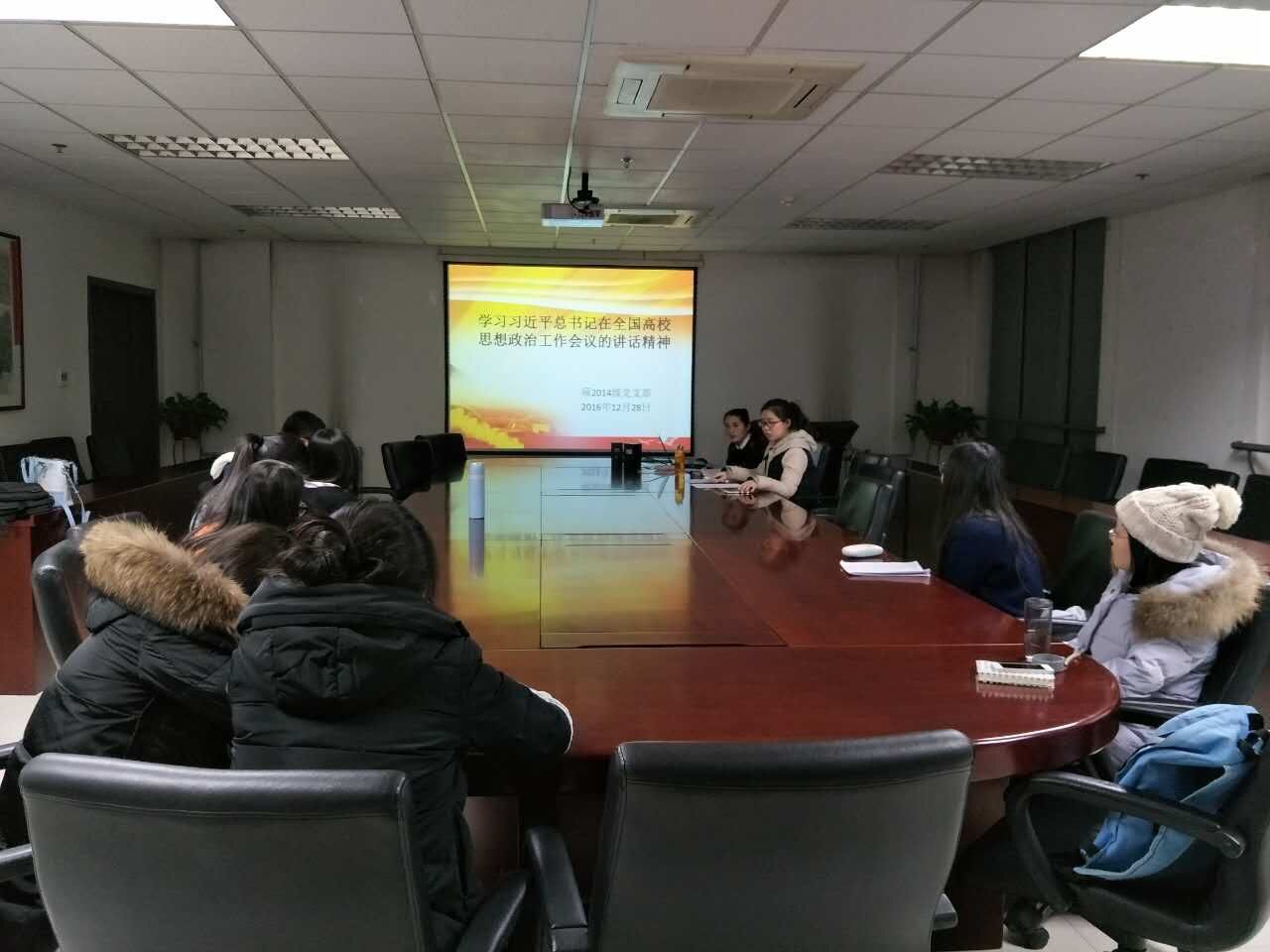 2016年12月28日,我院硕2014级学生党支部在外文楼B912召开了组织生活会,会议讨论并表决预备党员张琪珑同志的转正问题,并学习了习近平总书记在全国高校思想政治工作会议上的讲话精神。
