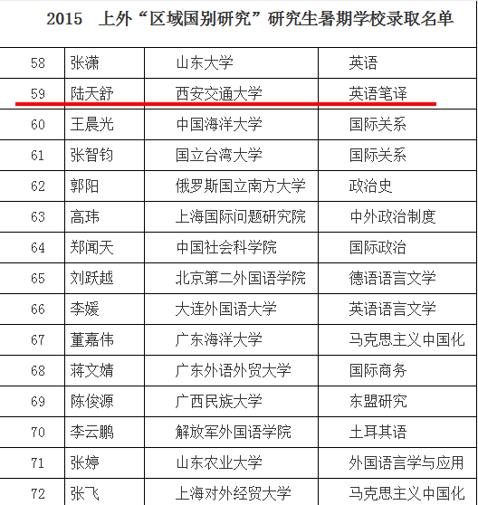 凤凰花纪,栀子花开。近日,我校贝斯特bst3344MTI2014级翻译硕士陆天舒,经过自主申请和学校推荐,成功获录2015年上海外国语大学暑期学校。他是本次该项目中我校唯一入选学生,同时也成为西北地区高校中唯一被录取的研究生。