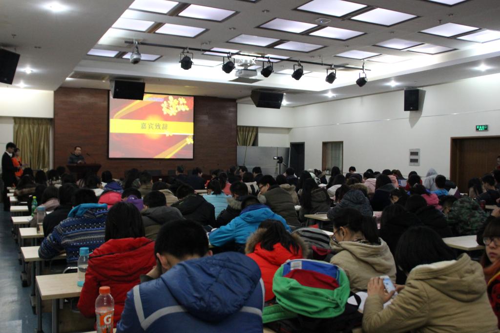叶明老师首先发表致辞,他提到:建设综合化国际化校园,外语学院要发扬带头作用,不仅要将学生语言技能与学科本体建设结合,还应处理好人文教育与其他理工学科教学与科研的关系,金秋外语节已举办十二届,为我们全校同学提供了个性化发展的平台,鼓励学生在学习和实践中同时进步,多样化的活动也培养了学生创新思维能力,提高了同学们综合运用外语言的能力,他还希望外语节能在校外更大范围内具有影响力。