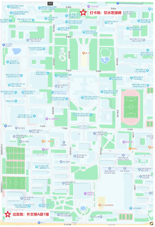 兴庆外文楼—梧桐东道—北门饮水思源碑—梧桐西道