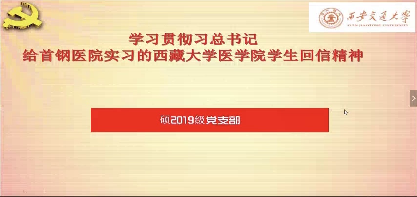 2020年3月12日晚7点,贝斯特bst334419级党支部召开了名为“学习贯彻习总书记给首钢医院实习的西藏大学医学院学生回信精神”的组织生活会,受疫情影响,此次生活会仍以网络形式进行。参加本次会议的人员包括贝斯特bst334419级党支部全体学生党员及积极分子,主持人为姚瑶同志。会议分为学习习总书记书信内容、党员提出建议、个人职业规划三个部分。
