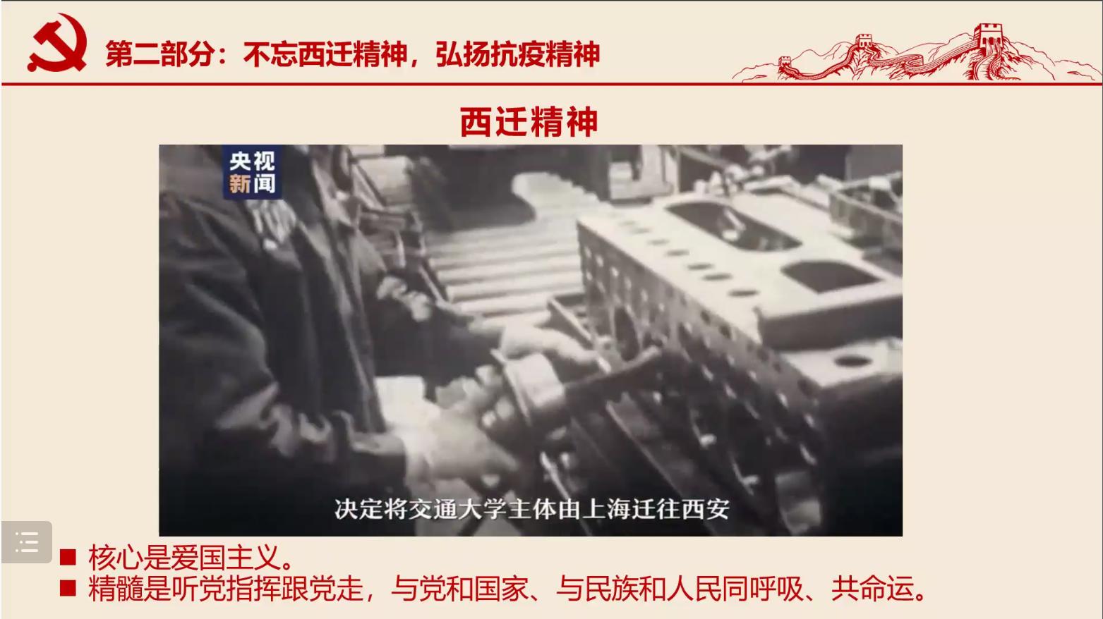 接下来,通过观看视频,同志们再度回顾我校西迁精神,深度体悟抗疫精神。
