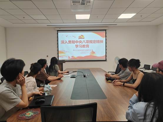2025年6月5日,我院硕4122班党支部在涵英楼5-5077开展了“深入贯彻中央八项规定精神学习教育”主题组织生活,旨在通过理论学习,结合实际生活案例,进一步增强党员廉洁自律意识,推动支部作风建设。全体党支部成员参与此次学习,党支部书记聂骁驰主持本次活动。