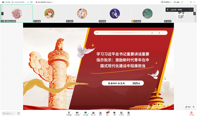 随后,林宸帆同志带领大家学习了习近平总书记重要讲话重要指示批示:激励新时代青年在中国式现代化建设中挺膺担当。她介绍了总书记对新时代青年工作成就的肯定,强调共青团工作要把握青年运动主题,加强对青年的政治引领,激发青年在中国式现代化建设中的担当,全面加强共青团和团干部队伍建设。同时,对新时代青年提出了坚定理想信念、勇于担当作为、锤炼品德修为、练就过硬本领的要求。