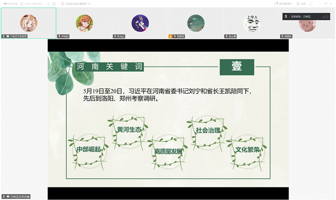 活动伊始,江林芷同志带领大家学习了习近平总书记重要讲话重要指示批示:坚定信心推动高质量发展高效能治理,奋力谱写中原大地推进中国式现代化新篇章。2025年5月19日至20日,总书记前往洛阳、郑州考察调研,强调河南要落实中部地区崛起、黄河流域生态保护和高质量发展等战略部署,在建设现代化产业体系、农业强省、改善民生、加强社会治理、保护生态环境、推动文化繁荣兴盛等方面发力,以高质量发展应对外部环境的不确定性。